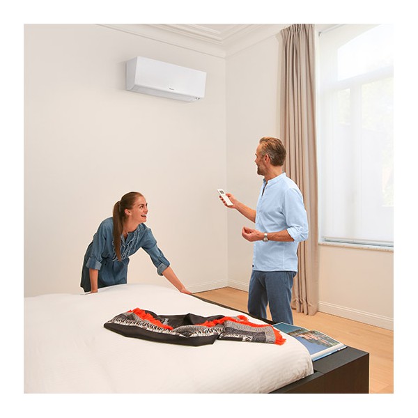 Perfera væg model er den perfekte løsning til komfort i din bolig. Varmepumpen har bevægelse sensor som styrer luftstrømmen i 2 retninger, væk for personer i rummet. Varmepumpen skifter til energibesparende funktion når der ikke registreres nogle personer i rummet. Med 3D-luftstrøm kombineres lodret og vandret autosving, så der bliver cirkuleret luft helt ud i hjørnerne af store rum.